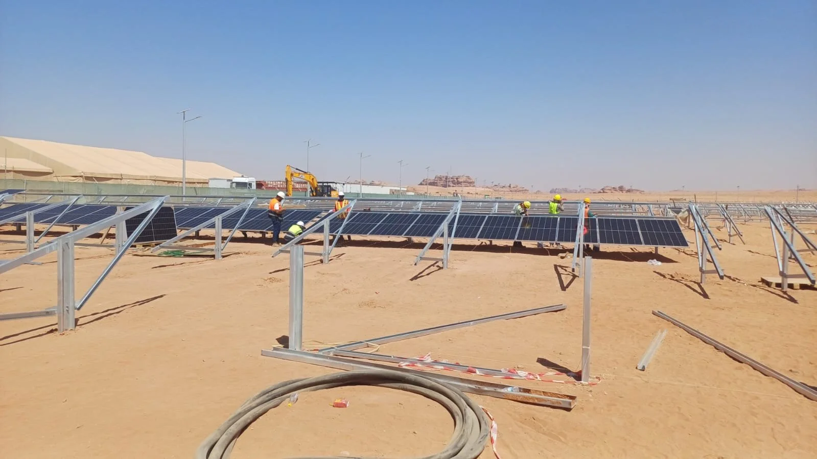 UKSOL Energy KSA executed key installations, including PV panels, LV and MV transformers, and steel structures, ensuring a reliable energy infrastructure for the camp.